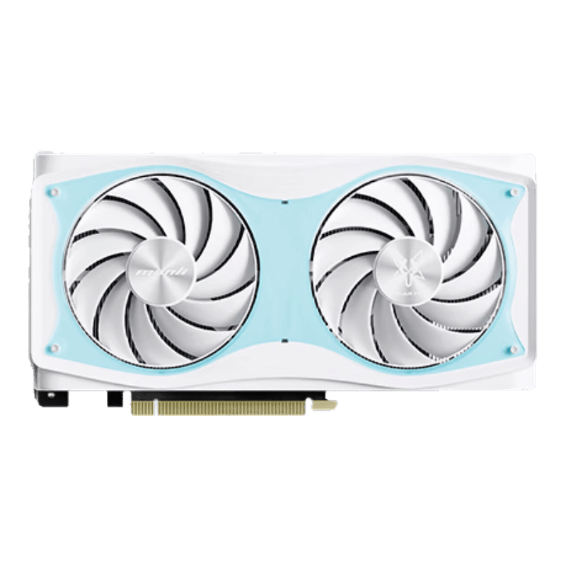 万丽显卡采用了ACG设计语言,整体外观简洁大方,白色调适合多种风格的机箱。其尺寸为240 x 126 x 50 mm,适合大多数主机。